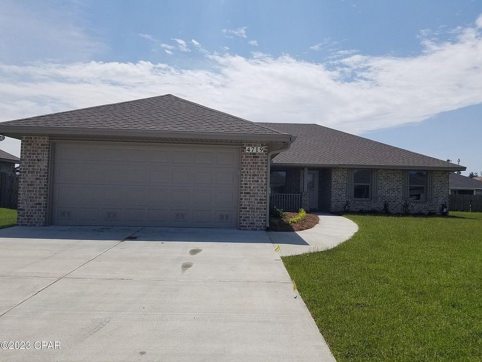 Receive 1% back towards closing cost when using builder preferred lender. Construction Almost Complete on this 3-bedroom 2-bath split all brick new home with an oversize 2 car garage, man cave, emergency generator hook-up. Open floor plan with outside covered patio and hot & cold outdoor shower. Master bedroom has a separate office, walk-in closet, tray ceilings with rope lighting and the bathroom has walk-in shower with seat & double vanity. Nice size additional bedrooms & 2double door closets including all your blinds. The house has large open family room with electric fireplace, LVPs throughout house. The kitchen has granite tops, real wood cabinets and SS applanates that's open to the family and dining room. Sprinkler system and security system included. thermoseal spry foam system, dp150 windows with argon gas and the house is built to the new hurricane codes of Florida. If important information and measurements including lot size should be verified.