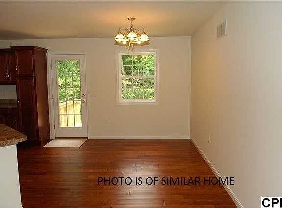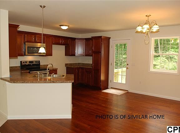 Quiet setting surrounded by mature trees on this "dead-end" street is this brand new 4 BR home w/"hand-scraped look" wood floors in entry, kitchen & dining area. Kitchen w/stainless appliances & breakfast bar opens to living rm & deck. 3 BRs, 2 baths on upper level & 1 BR (den), 1/2 bath & family rm on lower level. Entire home sits above grade for lots of light/windows. Two decks to enjoy private rear yard, 2 car garage.