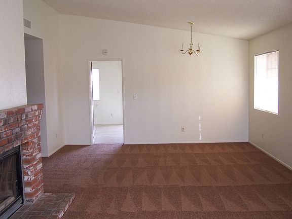 Three bedroom, two full baths with sky lights. Two car garage with opener. Laundry room. Large living room with brick fireplace and formal dining area. Eat in kitchen includes refrigerator, stove, dishwasher. Large, fenced back yard. Central heat and AC. New paint and carpet. Trash is paid. Pets allowed with approval. Trash is paid. Pets allowed with owner's approval.