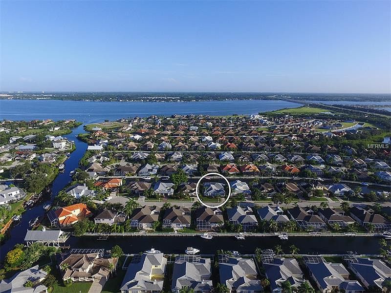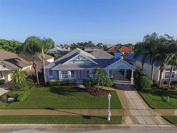 Key West style waterfront home with pool and 36' dock in gorgeous waterfront community of The Inlets, one of the best boating areas on Florida's west coast with direct access to the Manatee River and Gulf. One owner, light filled open floor plan with split bedrooms, 2.5 baths, and office with built in bookshelves. Kitchen with casual coastal wood cabinets, and Great room with entertainment center. 10 ft volume ceilings, built-ins, ceiling fans, plantation shutters, and new exterior doors with in glass window blinds. Several rooms open to large screened pool lanai, including Master suite, 2nd bedroom, and pool bath. Spacious master bath with large walk in shower, garden tub and double vanities. Surround sound wiring, speakers in Great room, with remote speakers in Dining and Lanai, security system. 2 car garage with workbench and side entry. Porte Cochere covered parking with convenient side door. New A/C in 2013, natural gas water heater and pool heater. 1 year home warranty included, and recent roof certification. HOA maintained 75 ft seawall dock with power and water for up to 36 ft boat, to enjoy boating, fishing, and visiting local venues. Fresh water inlet washes your engine on way back to your slip. Estuary walking trails, tennis, fishing pier, kayak launch, and playground. No CDD, low HOA and low flood insurance. Easy access, near I-75 and SR64, close to airports, great schools, restaurants, shopping, beaches, Sarasota, St. Pete & Tampa.