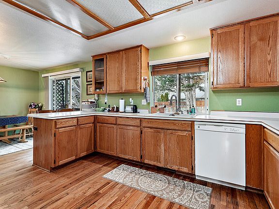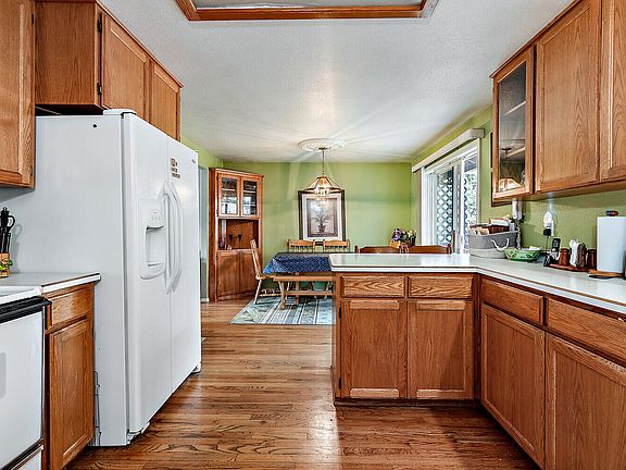 Open wide foyer with natural real wood which continues through the kitchen and dining room. Dining room looks out onto the large treed backyard through the slider and patio. Light and bright living room off foyer leads to dining room too. Wide hallways lead to primary and guest bedrooms all on one level for easy access, and spacious primary has a nice private deck to enjoy the quiet backyard too. Nice trim throughout the home and a couple of very nice built in cabinets. Plenty of storage, ceiling fans, large primary bathroom with his and her closets, plus pull-down attic storage over entire garage area. All this plus large low maintenance gravel area with raised garden beds and RV parking and paved turn around area. Beautiful East Medford area at an affordable price, Show to your clients today!