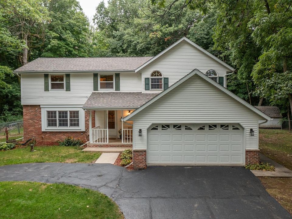 4 BR, 2.5 BA, 2-story home on beautiful private 1.82 AC wooded country lot. Covered porch entry and main floor with hardwood flooring throughout. Living room with stone fireplace & patio doors to large deck. An extension to the deck is an above ground pool, stairs, and a deck has been added to get in & out of the pool. Well-appointed eat in kitchen includes stainless steel appliances & breakfast bar. Primary BR suite with private bath, walk-in closet & large windows for natural light. Large main floor laundry plus mud room off the attached 2.5 car garage. Recent updates include septic 2021, air conditioning 2021, roof 2023, electrical 2023, many fixtures have been replaced, and more. Slinger Schools. Check out this great home and make it yours!