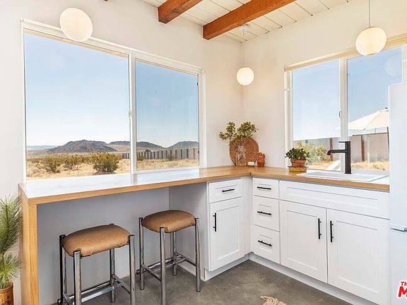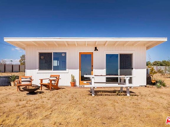 Turn-key mid-century modern cabin on five acres. Corrugated metal fence for privacy (2.5 acres are fully fenced in). Mini-split AC/heat, Mojave Wifi, electric tankless water heater, RV hookup. Electric/water. Incredible views of the surrounding mountains and very close to the Integratron, Goat Mountain, Giant Rock, La Copine, Moonwind and Giant Rock Meeting Room. 5 wild acres featuring palo verde trees, creosote bushes, yucca trees, beavertail cactus and more. Breathtaking beautiful sunrises/sunsets, and panoramic that are virtually uninterrupted thanks to 3 large BLM lots behind the property. Remote desert living with modern conveniences and close proximity to natural parks and hiking.
