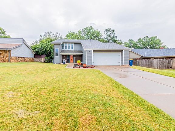 GREAT PRICE IN POPULAR PARKVIEW!!!! Come take a look around from the Kameoka Trail that will take you on adventures throughout to the ponds in the neighborhood waiting for a midday fishing get away, then wrap up the day with a splash in the community pool! Introducing a remarkable 3-bedroom, 2.5-bathroom home situated in a tranquil neighborhood, giving you access to a community pool, serene ponds, and a park; perfect for leisurely strolls and family activities. Inside, you'll find a spacious living area highlighted by a grand stone fireplace, perfect for cozy gatherings. The fireplace offers versatility, accommodating both gas logs and wood for your convenience. The living area flows to the dining room, perfect for hosting special occasions. The kitchen features new Corian countertops and stainless steel appliances, along with a convenient walk-in pantry. Upstairs, an abundance of natural light fills the small desk space on the landing, offering an inspiring spot for work or study. The master bedroom has an en-suite bathroom providing privacy and space for busy mornings. Throughout the entire home, luxury vinyl plank flooring adds a sleek and low-maintenance touch. This property provides peace of mind with a new roof installed in 2022 and a new hot water tank in 2021. Step outside into the backyard, where you'll discover a deck and patio area, perfect for enjoying outdoor meals and relaxation. The house itself sits on a green space and overlooks a tranquil pond, providing a serene and private backdrop to your daily life. This home also boasts two condensers, one of which was just replaced in April 2023, ensuring efficient cooling for hot Oklahoma summers. Additional amenities include a Rubbermaid outbuilding for extra storage and a storm shelter, ensuring safety during severe weather. This home is more than just a property; it's an opportunity to enjoy a coumminty. Don't miss the chance to make it your own. Schedule a showing today and embark on a new chapter in this COZY residence. Your home awaits! ENJOY THE VIRTUAL TOUR!