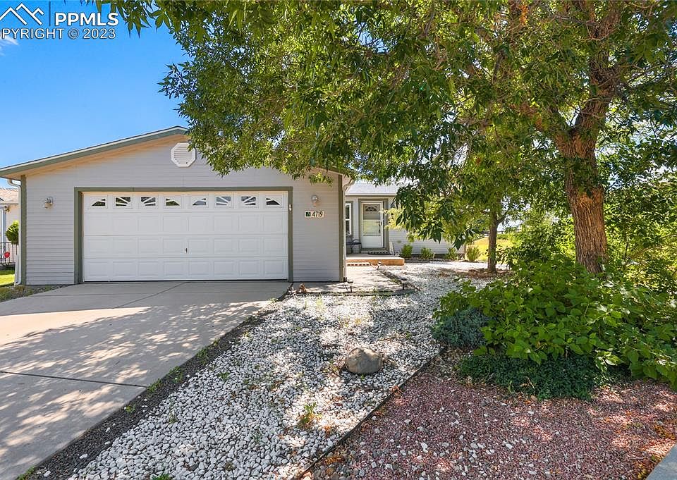Find your next home here for a GREAT DEAL!! No rear neighbors - Covered deck w/ Pikes Peak & Mtn views - Dog run -New Water Heater 2023 - Updated Shower 2022 - Water Softener 2021 - New windows in 2017 - New roof, gutters & down spouts in 2016 - Updated flooring & lighting - Vaulted kitchen, living room & master - A/C & 4 ceiling fans - Soft water system & reverse osmosis - Walk in jetted tub in hall bath - Oversized shower w/dual shower heads & 2 sinks in master bath - Sunny eat-in kitchen w/ walk out to 12x12 covered rear deck - Dog run - Over sized finished & insulated attached garage w/ full wall of cabinets- Fully Xeriscaped no maintenance lot - Community amenities include a pool, play ground, club house w/ internet, work out room & picnic area - Lots of community activities. THIS HOME IS ON A LAND LEASE, and is already included in the HOA
