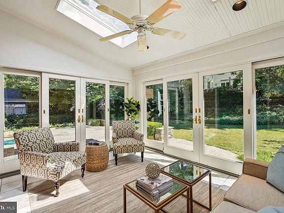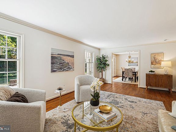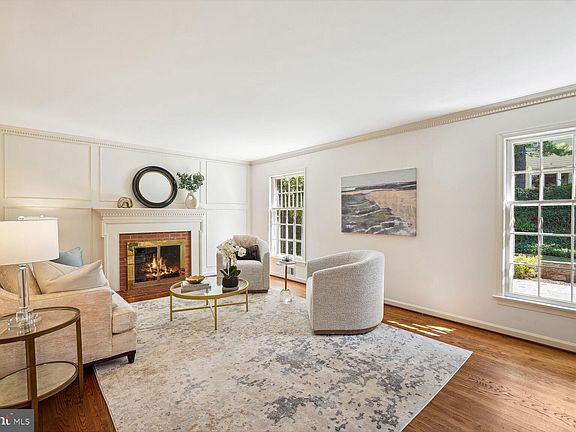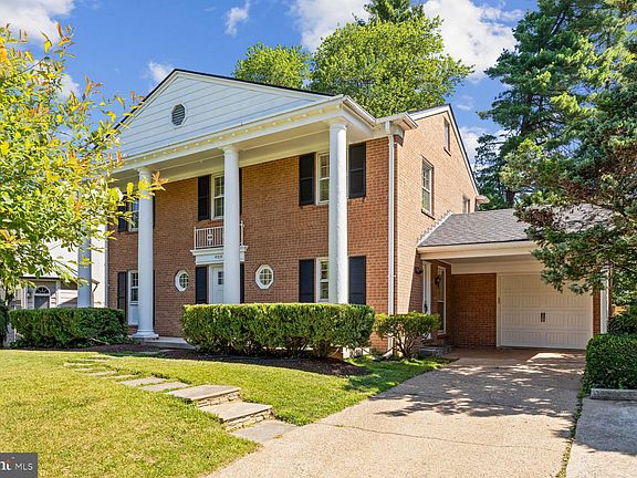 NEWLY PRICED !!OPEN SUN 1-3 PM Classic four sided Georgian brick colonial with a dramatic columned front portico to welcome you. First floor office/library with custom walnut built-in bookcases, walnut paneled wall and a deep closet. The elegant living room features dentil crown moulding, masonry fireplace with a brick surround and a traditional Williamsburg mantel. The formal dining room features crown moulding, chair rail, wainscoting and French doors leading to a wonderful sun filled solarium with exposed brick walls, ceiling fan and skylights. Table space kitchen and a powder room complete the first floor. Four bedrooms and two full baths on the second floor. Partially finished lower level with a recreation room, storage room, exercise/hobby room, utility room, full bath and laundry room. Flat, fenced private yard, attached garage. flagstone patio. Conveniently located just over 1/2 mile to Friendship Heights Metro, shops, restaurants and amenities. BCC School district. Hardwood floors, new roof, mature plantings. ALL BRAND NEW: roof, skylights, front door , garage door, attic insulation. Painted and staged and waiting for your offer!