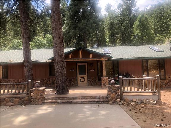 Your new Mountain Retreat is a single level over 2700 sqft beauty*Secluded on Private Road*Completely Refreshed from 1846 sq ft cabin to over 2700sqft Refuge-Truly Wonderful knotty-pine interior, with custom hand built wet bar-Massive Master with adjoining Master Bath and soaking tub*Shower and complete Cedar walk-in Closet, french doors lead to balcony seating outside-No words can describe the setting of this beautiful home, there is an outside Portico built true craftsman style, outdoor fireplace, porch area seating and observation deck for the many Elk and Deer that use the eastside gulley for nesting. Interior of home has large open plan, with dining, living, and even a dance floor should you be so inclined! Windows galore, second bedroom in hall way across from common bathroom, 3rd bedroom loft area has rock wall for climbing and spiral staircase for accessing the loft or lower play area/guest area. Large 4 car garage upstairs and MONSTER motor home garage/work space oversized-Balconies/and or porches surround 70% of home