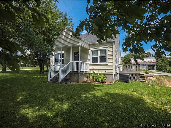 2.3 acres in FLOYDS KNOBS just minutes from the Chicken House Restaurant (close to the city with quiet serenity of country living). Conveniently located near New Albany, Georgetown and Borden. In addition to all the land, this home includes a nice barn (with electricity) with concrete pad. The back door opens to a spacious mudroom, continues to a step-saving kitchen where appliances remain, then opens to the Dining Room which continues to the Living Room. Also on the first floor is a newly remodeled full bathroom and another bathroom with a shower/tub combo attached to the Primary Bedroom. Upstairs there are two bedrooms with original hardwoods, built-in storage and closets (sans doors) and a newer mini-split in one room that serves both upstairs bedrooms. Both rooms have original hardwood floors. The unfinished basement adds over 600 sq. ft. workshop/storage. Come see this space that lives large with room to breathe the country air, just a quick jaunt into the city!