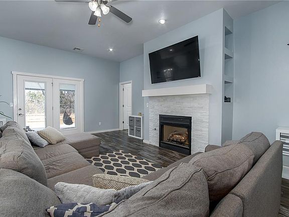 5.84 WOODED ACREAGE WITH POND AND GATED DRIVEWAY * OPEN FLOOR PLAN, 4 BED +HOME OFFICE OR 3 BED 2 HOME OFFICES+3 FULL BATHS, 10 FT CEILINGS IN OPEN LIVING KITHEN CONCEPT, NATURAL LIGHT, 9FT GRANITE ISLAND WITH STORAGE, SO MANY CABINETS IN THIS KITCHEN, WALKIN PANTRY, GAS COOKTOP, 10 FT CEILINGS IN OWNERS RETREAT, DOUBLE VANITIES,CORNER TUB,WALKIN SHOWER AND WALKIN CLOSET ALL INCLUDED IN THIS RETREAT * BEDROOMS 2 AND 3 SHARE A JACK AND JILL BATH, 4TH BED COULD BE 2ND HOME OFFICE IT IS NEXT TO A FULL BATH * THIS HOME ALSO HAS AN OVERSIZED APPROX. 830 SQ FT GARGE WITH 10-12 PERSON STORM SHELTER *LARGE COVERED AND OPEN BACK PATIO OVERLOOK PRIVATE VIEWS AND FIREPIT 8X10 OUTDOOR STORAGE UNIT. AND THIS BEAUTIFUL HOME INCLUDES SOLAR PANELS THINK ABOUT MAKING THIS HOME YOUR NEW HOME!!!