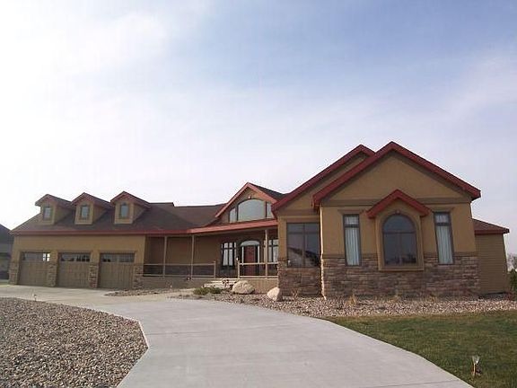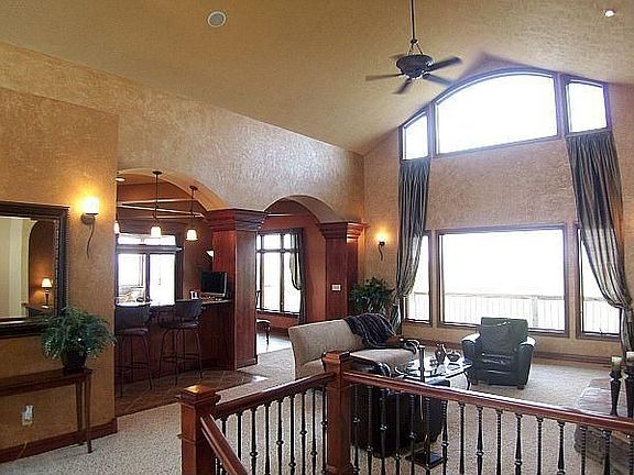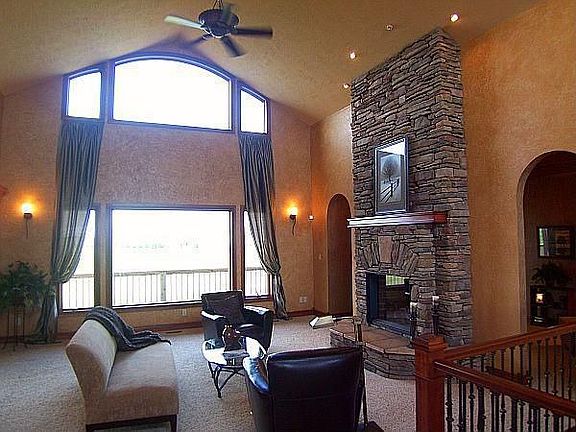 Property has been just reupdated. Awesome view of #1 tee box and fairway at Bakker Crossing Golf Course. Ranch walkout on over 1 acre overlooking golf course and open fields. Beautiful gourmet kitchen with granite countertops. Towering ceilings in the living room with a huge fireplace (20 ft ceilings). Three good sized bedrooms on the main with two and a half baths. Lower level has large family room, theatre room with large bar and two additional bedrooms. Two laundry rooms in home with one in the upper next to kitchen and one in the lower that has a ton of cabinets. For additional info on Bakker Crossing Golf course go to http://bakkercrossing.com/.