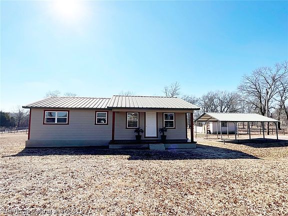 Fresh new complete remodel on this country charmer! Absolutely stunning inside! New paint, flooring, fixtures and windows throughout. New cabinets, sinks and tub/shower. Everything is NEW! Two bedroom, one bath all sitting on one acre +/- with beautiful mature trees, two-car carport and small storage. Conveniently located just South of Muldrow only 2 minutes to I-40. Come check this one out today!!!