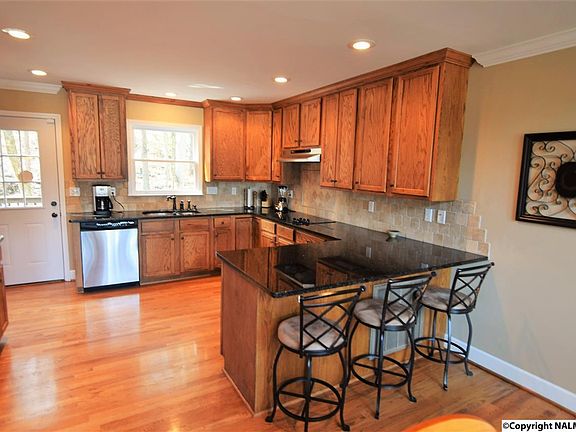 Come and see this beautiful water view home with slip in shared 4-slip shared boathouse! Located conveniently between Huntsville and Guntersville, this 4 bedroom, 5.5 bath home features an open floor plan with vaulted ceilings and a panoramic view of the lake. Custom kitchen cabinets with granite countertops, wood floor in kitchen and living room. 2 bedrooms on main level each with their own bathroom, 2 over-sized bedrooms on second level each with their own bathroom and game room in basement with a full bath. House was built in 2008. Don't miss out on this opportunity to have a one-of-a-kind home near the lake!