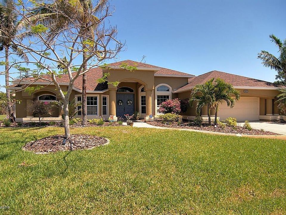 Experience beachside living in one of the most sought after communities Rio Villa North, home located on a cul-de-sac with a large fenced in yard and huge patio with slate tile. Built by one of Brevard's best builders. Open gourmet kitchen overlooks the family room and dining area with breakfast bar, wall was removed during remodel to open kitchen even more. Beautiful granite tops and stainless appliances. Master bedroom features trey ceilings and recessed lighting. Walk in shower and large soaking tub with double sinks. Entire home features beautiful real cherry wood flooring and tile in bathrooms. Property features a new roof! Located near paradise beach access and zoned for A+ schools.