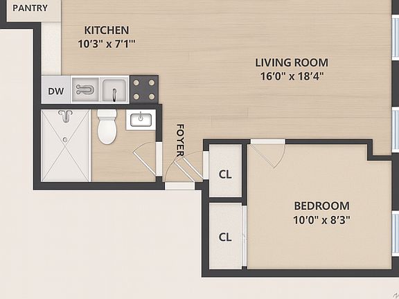 - Bedrooms: 1