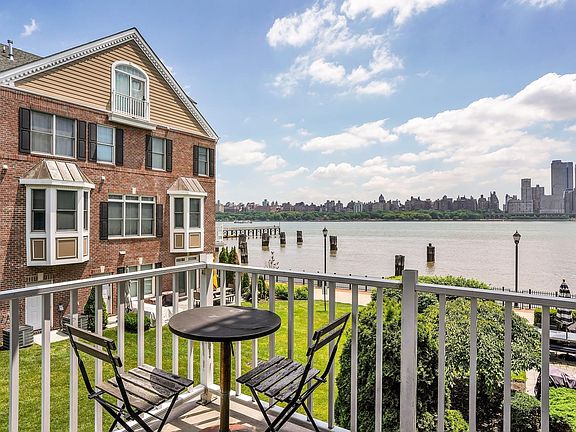 Welcome home to this rarely available and highly desirable 3 Bedroom / 3.5 Bath Fanwood model townhouse nestled within prestigious Jacobs and Bulls Ferry. This sublime residence accommodates luxury living among inspiring NYC and Hudson River views. Having North, South, and Eastern exposure fully illuminates the perfect space with natural sunlight and spans an incredible 2,341 SqFt, accented by resplendent gleaming wood flooring on the main level. Travel between floors and begin at the lower level multi-purpose room with access to the garage, and a walk-out patio. The second level has a gloriously expansive living area with a balcony, directly alongside the kitchen featuring plenty of cabinetry for storage and a breakfast bar. Moving to the third level encompasses a beautiful primary ensuite with a walk-in closet and balcony with views of the city and river. Finishing out this level is a generous size second bedroom ensuite. Enjoy the top floor lofted bedroom plus den area with a full bath and a balcony, showcasing a view of NYC and the Hudson River, where you can customize the entire floor to suit your needs. Indulge in two-car parking between a garage and driveway, and the washer/dryer room, making this truly a place you will want to call home! The community offers two pools, a play area, a Jacuzzi, 24/7 security, a free shuttle to/from the New York Waterway Ferry Terminal, and a bus across the street providing the easiest access to NYC! Savor the magnificence of the waterfront promenade and the beauty that outstretches before you. World-class shopping, dining, and all the amenities are nearby. Come home to your peaceful retreat along the New Jersey Gold Coast waterway along with the conveniences and extravagances of a City lifestyle!