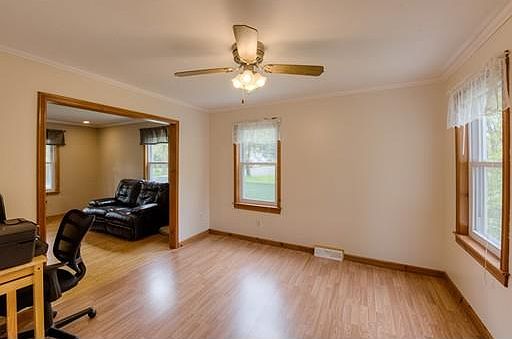 - Din Dscrp: Ceiling Fan(s), Open Floor Plan, Flooring - Laminate, Remodeled, Closet, Crown Molding