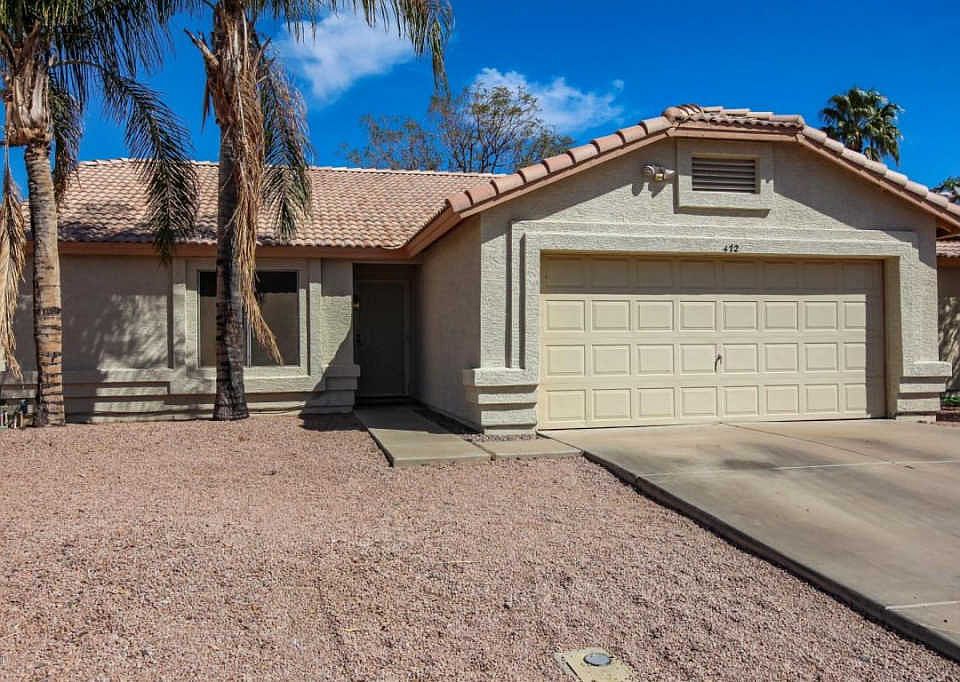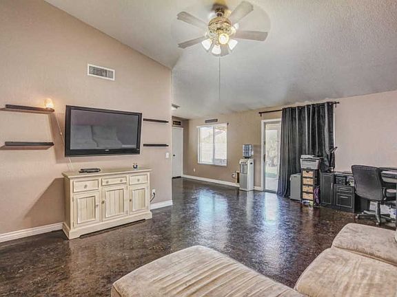 UPDATED GREAT ROOM PLAN! Vaulted Ceilings throughout for Spacious Feeling, Low-Maintenance Concrete Floors in all Main Living Areas, Lots of Oak Cabinets in L-shaped Kitchen & 3 MONTH NEW Air Conditioner!!! NO HOA and close to Shopping, Schools and Restaurants. Large Covered Patio overlooks Grass Backyard with Child's Swing Set. North/South Exposure is a PLUS! Hurry to see this Great Home today!!!