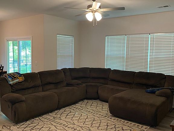 This Ranch style, open floor plan home in Hearthstone Lakes is less that a year old. All new appliances, granite countertops, & elevated kitchen bar for extra seating. Dedicated pantry & laundry room. Hardwood floor in living spaces, carpet in bedrooms. Owners en-suite includes double vanity, tile shower and garden tub. 2 car garage, covered back porch, sprinkler system. Access to community pool & weight room included!