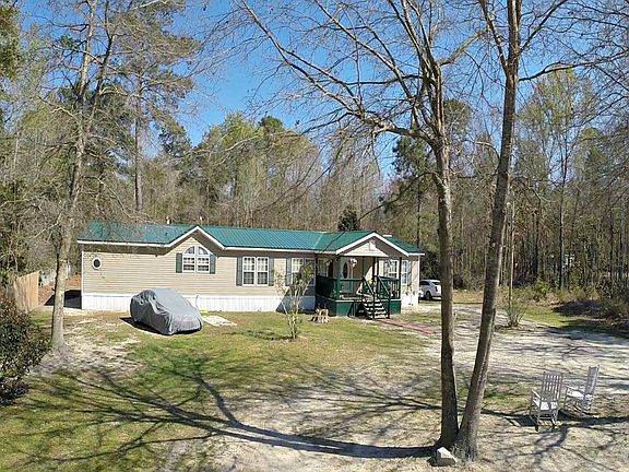 Charming front porch welcomes you to this spacious 4 Bedroom, 2 Bathroom, 2,560 sq.ft. (80 x 32) Adrian Modular home situated on gorgeous one acre wooded lot. Well cared for and in excellent condition with new Metal roof, new HV/AC and new hot water heater. This home features large eat-in kitchen, plus separate dining room, formal living and family room complete with fireplace. Carpet throughout, wood laminate in kitchen. Surrounded by lush foliage and warm southern breezes, this home offers everything you need to settle down & sip some sweet tea while listening to the sounds of the season.