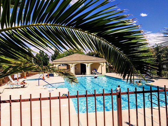 Gorgeous, barely used original model, 4 Bedroom, 2 Bath single level fairway front townhome with spectacular first fairway and East facing mountain views. Two fairway front master suites, with two more bedrooms on street side. Full width (approx 46 foot wide x 10 feet deep) covered patio, facing East to the beautiful mountains over the first fairway (and future lake) of Coyote willows golf club. Beautiful crown detail staggered, knotty alder kitchen cabinets with beautiful backsplash, high ceilings, stainless steel appliances, ceiling fans in all rooms, luxurious wood plantantion shutters, tile flooring with carpet in the bedrooms. Two masters and living room all have sliders to the patio. Beautifully lush, mature landscape, beautiful pool area with spa, insurance, sewer, solid waste disposal, water, and exterior maintenance all covered through the HOA. Extra, first come, first serve RV parking close by. Just steps to the golf pro-shop, practice area, & 1st tee! Beautiful pool & spa area! Great location close to community garden, Casa Blanca Casino, Casa Blanca golf club & driving range, & MORE!