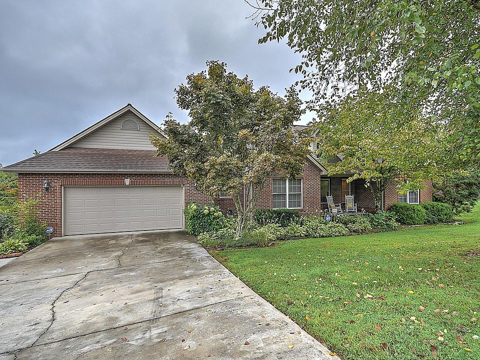 Impressive Price Improvement! Beautiful Brick Beauty! This 4bedroom/3bath Brick Ranch Style Home offers a completely one level living with a full finished basement. Conveniently located between Jonesbrough and Johnson City. You have the luxury of Front Porch sitting or back porch sitting from top and bottom with a nice mountain view especially during the fall. Now lets open the door to your Living room with Gas fireplace Split - House Plan with Primary Suite located on the opposite side of the 2 l bedrooms on the main level. Formal Dining area that flows into the Kitchen. The kitchen has went threw a facelift with newer counters, Gas Stove (with the capability of having electric stove if one would like ) stainless steel Refrigerator down stairs will stay with home. Laundry Room is located off the Garage side . Primary bedroom has walk in closet, hardwood floor on all the main level, remodeled bathroom with walk in custom shower. You also have two back porch entry's from main level . Basement level host a full living /Den area, a bedroom or can be used as many things, another Garage/ workshop area. Hot Tub will stay it new and owners paid $15,000 you will find a landscaped yard, with fruit trees, butterfly garden, fenced back yard and so much more. Home has natural gas. Owner will be leaving some of the outdoor furniture along with Gas Grill which has gas running to it already. You will also find a very convenient concrete turn around for easy road access.