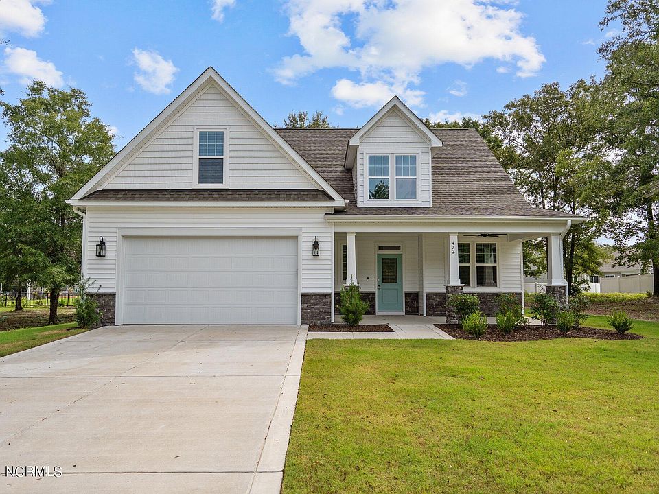 Step into the best of coastal living with this nearly new residence within the gated Seaside Bay community along the Lockwood Folly River. Built in 2023 by McKee Homes, this stunning 4 bedroom, 2.5 bathroom home offers 2,405 square feet of thoughtfully designed living space on a beautiful .2 acre lot. This home's desirable Biltmore floor plan seamlessly blends luxury and comfort, beginning with a stunning two-story foyer, gorgeous cathedral ceilings, luxury vinyl plank flooring, and a formal dining room with a tray ceiling. An inviting open floor plan encompasses the large living room with an electric fireplace leading to the gourmet kitchen with sleek quartz countertops, tile backsplash, stainless steel appliances, a sunny breakfast nook, and a spacious island, perfect for entertaining guests. An impressive first-floor master suite offers a tray ceiling, a spa-like bathroom with dual vanities, a tiled walk-in shower, a private water closet, and a generously sized walk-in closet. The laundry room conveniently connects to the two-car garage to double as a drop zone and features built-in cabinets and utility sink. Upstairs, the sizable loft offers versatility as a second living room, play room, home gym, or office. Three additional spacious bedrooms and the second full bathroom with double vanities complete the upstairs. Sip your morning coffee on the covered porch overlooking your expansive backyard for a peaceful start to the day. Residents of Seaside Bay enjoy exclusive access to numerous community amenities including a private boat launch and dock along Lockwood Folly River. Enjoy afternoons at the community park and scenic picnic area with a grill or an evening with neighbors and friends around the community fire pit. Conveniently located just 7 miles from Holden Beach, 14 miles from Oak Island, and 30 miles from Wilmington and North Myrtle Beach, this gorgeous home offers the perfect location to enjoy numerous coastal destinations. Call today to learn more!