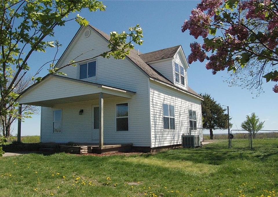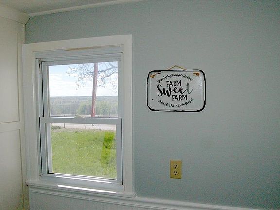 You can literally see for miles from this freshly remodeled home that sits on 3+ acres on top of one of the highest points in the county. This home has some new electrical, lights, kitchen cabinets, counter tops, back-splash, stainless steel appliances, interior paint, carpet, some new windows, some new siding and fascia, new gutters, and much more. There is a detached garage/workshop, a fenced in backyard, a livestock building, and an older storage shed. Enjoy quiet country evenings on the covered front porch!! Back on market - NO FAULT OF SELLER!! The property is fenced on two and a half sides. The southern boundaries are marked by flags in the ground and western fence. The home has nice thick vinyl plank flooring in the kitchen, laundry, and bathroom. The remaining home has all new carpet.