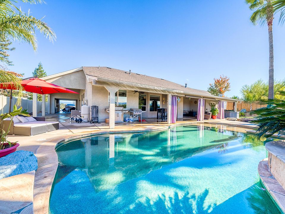 Views! Pool! Awesome views of Shasta Bally from kitchen & backyard. Views of Lassen out the front. This house is tip top with all the bells and whistles. Extensive outdoor living space for sunset entertaining! Beach entry pool with swim up bar and waterfall. Built-in natural gas fire pit. Finished 3 car garage with drive-thru roll up door. Home features a split floor plan with 4 bedrooms, 2 bathroom, granite, crown molding, formal dining, in door laundry room and fireplace.