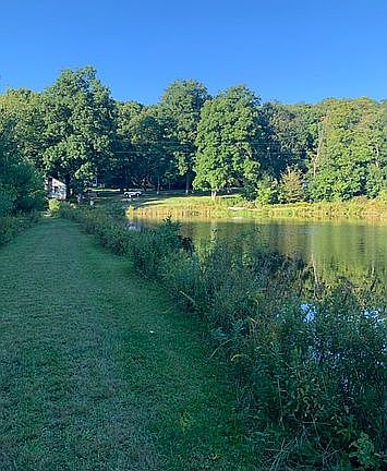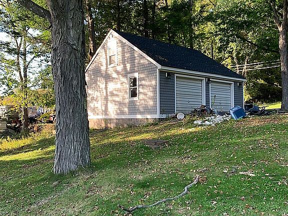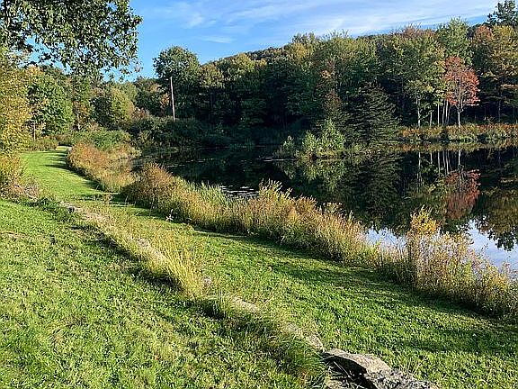 11.84 acres included in a beautiful area overlooking a pond with 2 car detached renovated with foam insulation and new electical panel. Standing loft inside garage for office use . Handyman's special for main house.