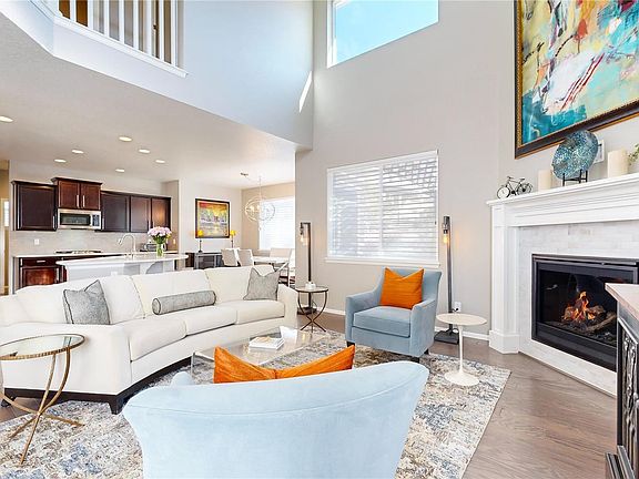 Modern and Immaculate ~ Nearby Trails ~ This is the like new 4 bed 5 bath you have been waiting for! Main Floor Office, Open Concept Floor plan, Separate Basement Living Area. Schedule a showing soon. The main gathering space area encompasses formal dining, living room with gas fireplace, and smaller dining area and is steps to the patio with breathtaking views of the trails from the back porch. A designer chefs kitchen ~ the sink is centered on a beautiful quartz kitchen island with seating; stainless appliances; double oven; gas cooktop; walk-in pantry ~ wow! High vaulted ceilings and windows bring in natural light. Primary bedroom is gorgeous with tray ceiling and silhouette window coverings, and the primary bathroom COULD NOT BE BETTER ~ dual sinks and vanities, beautifully tiled walk in shower, soaking tub, and don’t miss the Closet Factory storage system with hanging space, shelving, and double drawers (see 3-D Tour Link). Upper bedrooms feature walk in closets and black out shades, secondary upper full bath is immaculate. Updated ceiling fans in all bedrooms, new modern chandelier in dining area. Hunter Douglass window treatments throughout. Double laundry rooms - upstairs with storage and folding space as well as one in the basement. Basement is fully finished with high tray ceilings in the open area, kitchenette and bedroom with full clean bathroom. Enjoy your patio and trex deck with pergola and views of the hills and cul-de-sac. Fully landscaped yard with raised lawn and brick retaining wall. Garage with Race Deck flooring and plenty of storage. The Park Preserve is a quiet neighborhood backing to the miles of Ridgeline trail systems and blocks from the Miller Activity Complex - a sports complex and park area with many amenities. Castle Rock is quickly becoming a modern and fun community. Douglass County school district is highly rated.