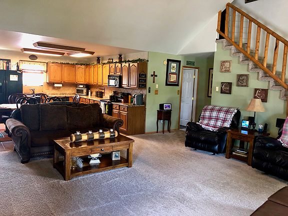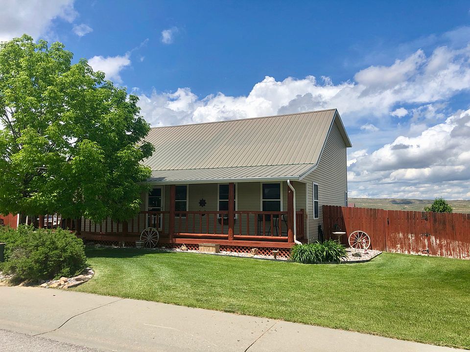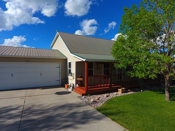 Unique and Beautiful1 1/2 story Glenrock home situated on 2 lots, professionally landscaped with tons of trees. Oversized 2 car garage, RV parking & large shed with power. The wonderful deck off the kitchen is perfect for entertaining & front deck is redwood with log railing. This home features an open floor plan with vaulted ceilings, 4 bedrooms, 2 baths, large master with his & hers walk-in closets & parents retreat. Extras... Fenced garden area, alarm systems, pond, & fire pit.