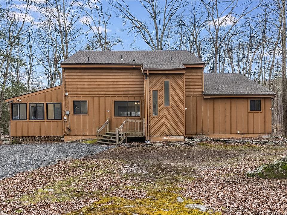 Do Not Wait to See This Fully Remodeled Stream-Front Short-Term-Rental-Friendly Property in Amenity Filled Penn Estates! Around the corner from community ballfield, basketball/tennis courts and swimming pool and offering easy access to Route 80, Camelback Mountain Resort and the downtown Stroudsburgs, this is a must-see in this location! Pull up to this attractive contemporary home and step into two story entry foyer. Inside find open concept dining space with plenty of room for a large table perfect for gatherings and fully renovated kitchen featuring quartz counters, modern Smeg appliances and center island. Finished sunporch offers perfect additional eating, relaxation or game space. Experience the real 'wow' in sunken living room with NEW windows overlooking backyard & stream plus full stone fireplace and tongue & groove vaulted ceilings. Three good-sized bedrooms round out the space, including a large primary bed on the main level. Fully remodeled baths too! Spacious deck overlooks flat backyard and sets the stage for perfect relaxation listening to the running water set down behind in community greenbelt. Public water/sewer. Low taxes. Wonderfully Appointed At This Price - Do Not Delay - Call to Schedule Your Private Tour Today!