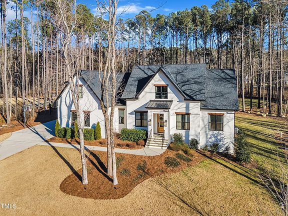 Welcome to the perfect combination of contemporary architecture and impeccable craftsmanship. Nestled on nearly an acre in the peaceful enclave of the prestigious Stonecrest at Norwood community, this modern farmhouse lives like a ranch on the main level and creates an experience worthy of a magazine. A grand, gabled window and approximately 22' ceilings flood the family room with natural light, overlooking a private picturesque landscape and unique patio with private fire pit. With 3,800 sq ft of living space, this home features four bedrooms with ensuite baths, a stylish office with built-in shelves, a thoughtfully designed bonus room, a fitness room and an additional private workspace on the upper floor. True custom living and modern elegance is displayed in every detail - meticulously designed bathrooms, a striking fireplace in the family room, floating shelving in the Chef's kitchen, exquisite stairway, heated floors in the primary bathroom, a laundry room connecting to the primary closet and a pet washing station. The side-load garage is equipped with two EV chargers and provides a direct connection to the pantry. A proposed pool location has been established with the County and could be a great addition to the outdoor space. Community amenities and convenient access to Chapel Hill, Carrboro and Jordan Lake complete this remarkable property.