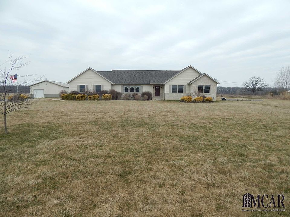 Impeccable and clean, inside and out!! This sprawling ranch features a full basement with Bilco walkout door, oversized attached garage, and 30 x 40 pole barn. 5 private, rural acres with a patio, and fire pit to enjoy the country nights! HUGE master suite, eat in kitchen, and living room, and a 30 x 26 rec room in basement offers plenty of room for all!