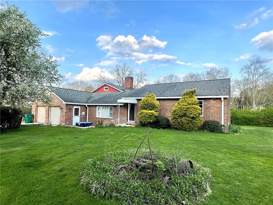 Welcome home to this surprisingly spacious brick home situated on almost 3 acres in Center Township. The main floor features 3 ample sized bedrooms, a full bath, a living room and family room, a large dining room and a beautiful eat-in kitchen with a wall of windows that provides tons of natural light. A private get-away or guest suite is located upstairs, with access to the garage via second staircase. This home also features a 2 stall garage, main level laundry room, finished basement area and office space, as well as a basement workshop with a walkout to the back yard. Enjoy evenings on the elevated covered back porch overlooking your beautiful level backyard, garden area, and grape arbor.