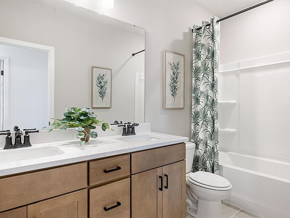 AVAILABLE NOW! This Aspen floorplan 5 bedrooms 4 full bathroom home that sits on a pond lot! Enter into the 2-story foyer with a study to the left with french doors. This home has separate dining, butler's pantry and enhanced kitchen with 42-inch cabinets, large island, wall oven & built-in microwave, quartz counter tops, upgraded backsplash & prewired pendant lights. The kitchen open to the family room. 1st floor guest bedroom with dual entry bathroom. Large mudroom with cubbies & hooks. Laminate flooring in foyer, dining room, butler's pantry, kitchen, great room & mudroom. Oak tread steps & black iron railing lead to the loft area with laminate flooring. Large primary bedroom with tray ceiling & primary bathroom with soaking tub & separate shower, dual vanities and 2 walk-in closets.Tiled flooring and linen closet. Bedrooms 2 & 3 share a hall bathroom with double sinks and tile flooring. Bedroom 4 has its own on-suite. Separate laundry room with tiled flooring. Rear covered porch overlooks the large pond. All bedrooms, loft, great room and covered porch are wired for ceiling fans. his home is a ZERO ENERGY READY HOME. These homes are ENERGY STAR certified, Indoor AirPLUS qualified. HERS SCORE 41