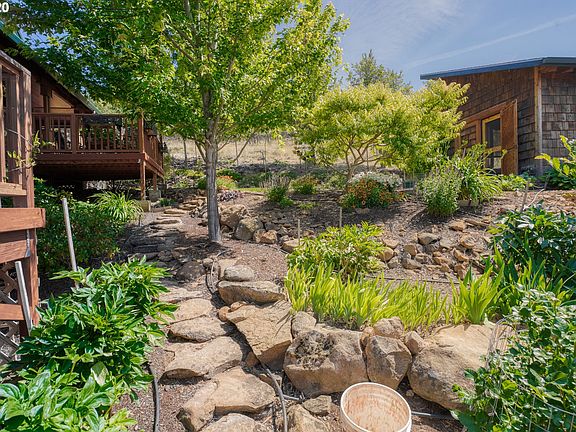 Custom Built Craftsman Style Home perched on 5 acres just a few minutes from town.Stunning 3 Bed 2 & 1/2 Bath home meticulously designed and maintained.Beautiful views from the wrap around porch with addt'l 120 sq ft patio.Gorgeous landscaping and gardens with 12x16 Greenhouse. Additional 28x30 Shop w 10x18 workshop & utility room.Whole house vaccuum.Propane back up generator, water filtration system.26 Panel Solar Array. Traditional style blended with modern conveniences and supreme quality.