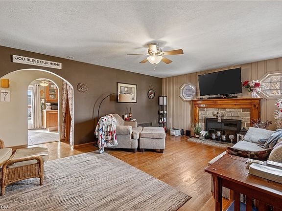 Amazing location for this all brick 4 brm 2 ba bungalow in the Perry LSD. This one is not your typical bungalow w/ 1570 sq ft plus about 750 finished in the basement w/ tons of room to roam. First floor offers a large living room w/ wood floors and a fireplace plus a good sized updated kitchen w/ ceramic tile floors, stainless steel appliances, and newer cabinets w/ pull out drawers. Back door off kitchen leads to a large deck w/ stairs leading to a newer concrete patio. Also on the first floor are two good sized bedrooms w/ wood floors and an updated full bath w/ extra cabinets. Upstairs offers a loft area leading to a large 20x14 bedroom w/ wood floors. The basement is like an in-law suite w/ a huge 20x14 family room w/ fireplace, 4th bedroom, laundry room w/ washer/dryer included, dry bar area, plus a full bathroom. Truly a must see. Updates include vinyl windows, concrete driveway/patio, dryer '23, disposal '22, HWT '22, and fridge new in '23! This one has so much to offer and will make a great house to call HOME!
