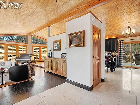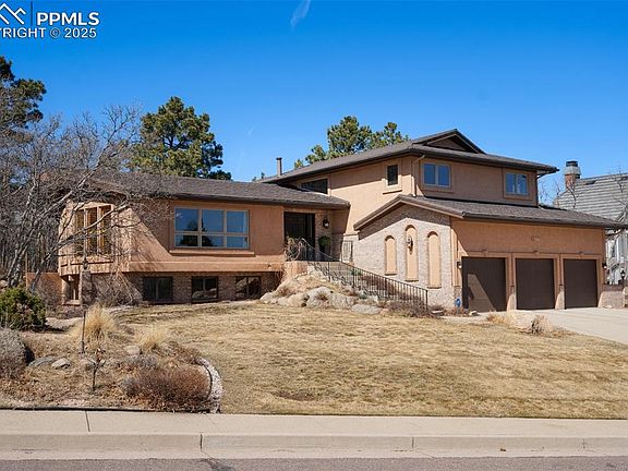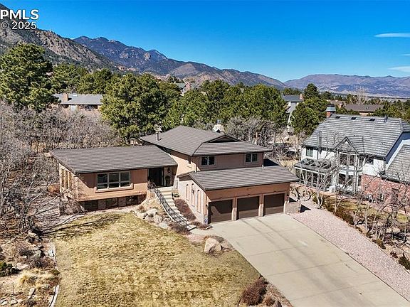 Sophisticated elegance and modern warmth make this remodeled Broadmoor D12 home a must-see! Nestled on a quiet cul-de-sac, surrounded by mature trees and breathtaking mountain views, this sunlit retreat sets high expectations the moment you arrive—and it doesn’t disappoint. Step inside to soaring original aspen wood vaulted ceilings, complemented by rich wood and travertine floors, while plantation shutters enhance the open, flowing main level with three spacious living areas, perfect for entertaining. The newly remodeled high-end chef’s kitchen is a showstopper, featuring 42" Greenfield custom cabinetry, soft-close doors, a Blanco prep sink on the island, a Shaw farmhouse sink, and stunning quartz countertops. Premium appliances include a KitchenAid French door refrigerator, a six-burner dual-fuel gas range, a Hisense beverage refrigerator, and a Dacor convection microwave. Step out back into your serene, private mountain oasis—ideal for summer barbecues. The expansive lower-level family room boasts a striking converted moss rock fireplace, a brand-new wet bar, and a stylish half bath. A sun-drenched garden room offers flexible space for an office, game room, or tranquil morning coffee retreat. Admire the newer wrought iron light fixtures and hand railings as you ascend to the upper level, where luxury abounds. The inviting primary suite features a cozy window seat and a spa-like bath with an oversized custom sink, a luxurious spa shower, a Toto bidet toilet, a Kohler cast iron soaking tub, and Brizio fixtures. Gorgeous tiled walls and heated floors complete the space. Two additional spacious bedrooms and a beautifully updated full bath with a double sink vanity and striking globe lighting complete this level. The fourth-floor garden level offers a versatile game or exercise room, a generous bedroom, and a 3/4 bath. A massive storage room spans the entire upper family room. Minutes from Fort Carson, parks, trails, and shopping—this is a true Broadmoor gem!