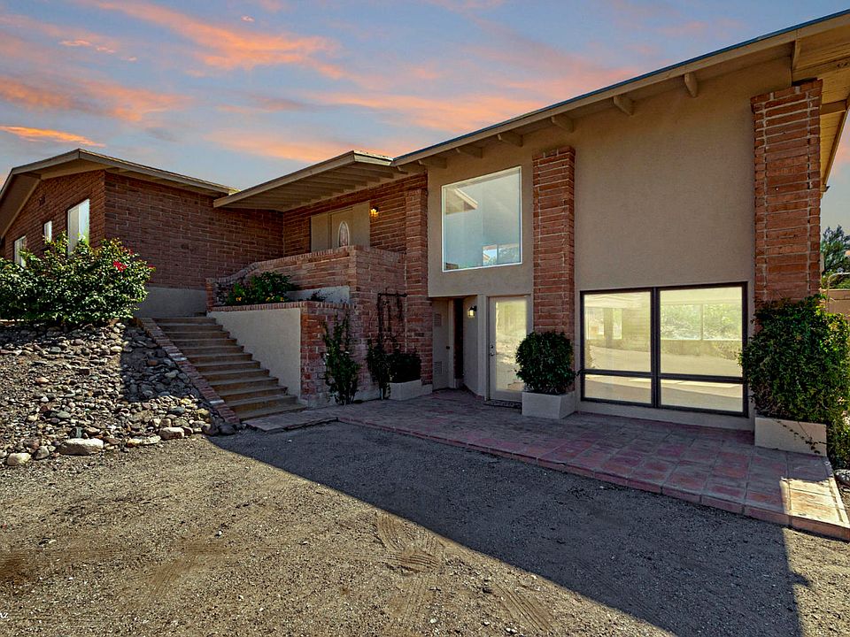Must see! Beautiful Foothills completely remodeled 4 bedroom, 3 bathroom home. This home has an open floor plan with beautiful wood look tile throughout, double pane windows, exposed beams with LED lighting, wood burning fireplace in the living room, master bedroom has barn doors to compliment the room, beautiful walk in tiled showefr, also has skylights to bring in natural light. The views of the Catalina's are stunning! The house includes a lower level home that can be used as guest quarters, office or studio. This home is ready for a family that enjoys comfort, city views and an amazing pool with heated spa and also a barbeque area for great entertaining. Don't miss out on this amazing house!