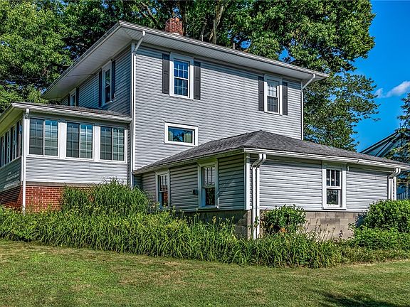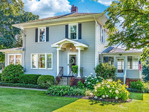 Beautiful 2 story home with gorgeous refinished oak trim. Beveled glass doors. Built in secretary desk in formal dining room. Well-cared for and maintained home on almost 1/2 acre lot. Beautifully landscaped. Mature trees. Ample Parking. Charming sunroom is perfect for a Den or extra sitting room, as well as a fabulous multi-seasonal sunporch to enjoy. Updated HVAC & windows. Siding and roof in 2016. New Well system. Fireplace in Living Room converted to gas insert and features built ins/bookshelves. So many original charming features! Bedrooms all have large closets, some walk in, which is unique for this era of home! Oak floors under carpet on first floor! Kitchen pantry with fold out/pull out shelves. 2 car detached garage. Shed.