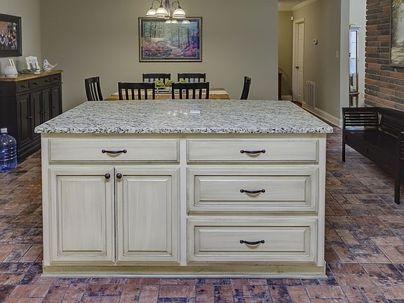 Beautiful Home set off of Lee Road. 3/2 With a lovely yard and plenty of would be landscaping to imagine. The Kitchen in this Home features stunning cabinetry and has an ergonomic curved countertop from cooktop to sink as well as a brick flooring. There is an island and the Kitchen flows into the Dining Room. The Living Room is right off the Dining Room separated by an exposed brick fireplace. The Laundry Room is spacious enough for an extra refrigerator and has a countertop and cabinet space for easy sorting, folding and storage. Master Bedroom has an Ensuite Master Bath. The Third Bedroom has a built in office area. The Second Bathroom has extra Linin storage.