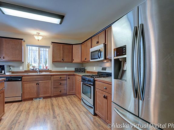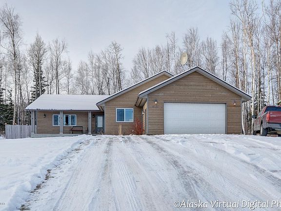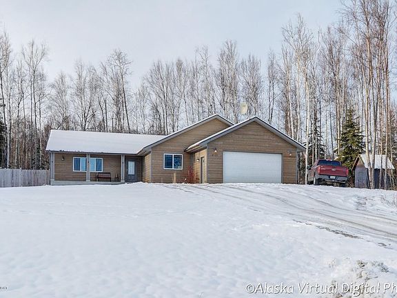 Attractive 3 year old sunny ranch style home w/dbl garage, poured concrete foundation, natural gas, on a .92 Ac level lot, surrounded by newer homes. Bright spacious living area with gas fireplace, central kitchen with island & pantry, master with private bath, ample storage, and laminate flooring. Landscaped front yard w/wooded privacy screen to rear. Near Little Susitna River & 4-wheeler trails.