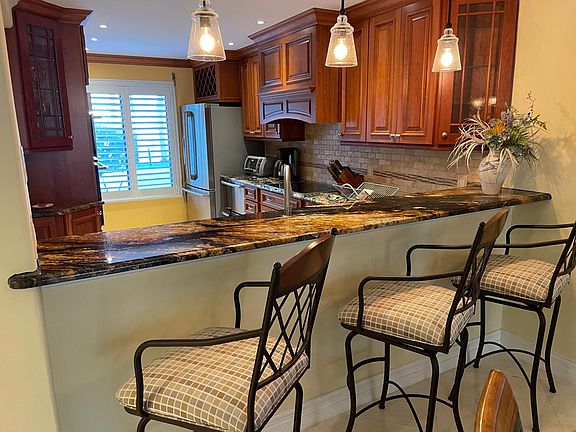 Beautifully furnished waterfront ground floor corner unit in Sandpebble community. Unit has custom upgrades throughout, marble floors, granite tops, high end appliances, washer/dryer. Lagoon front with porch overlooking expansive water view with small beach in yard, short walk to ocean beach, swimming pool, tennis, pickle ball, fitness center. Unit is extensively renovated with custom lighting and lots of storage space. Parking a few steps from the unit.