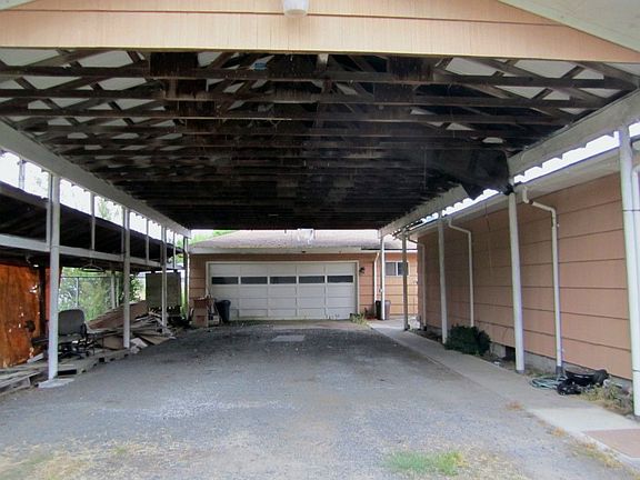 Situated on very large lot. RV Port offers covered parking for roughly 6 cars,and garage can hold up to 4 more.Garage has a shop and refrigerated fruit room. Home offers huge open spaces with brick fireplace w/pellet insert, heatpump, inside laundry, very large master with bath and walk-in off. Needs some updating, but at this price, its well worth it. half acre lot next door also for sale. Sold as is in its present condition.