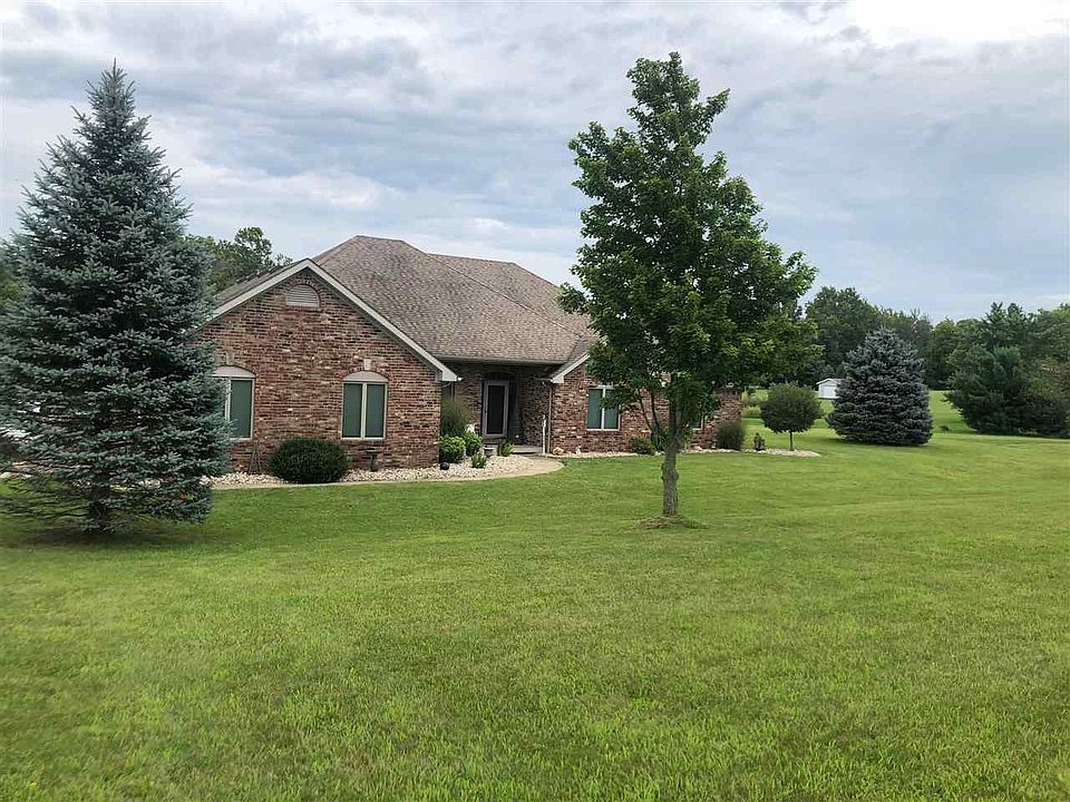 Gorgeous brick ranch with finished basement sitting on 3.83 acres with stocked pond, 3 car garage plus pole barn and newer inground pool. Large great room with fireplace. Custom oak kitchen with new appliances, island and access to deck overlooking property. Large master suite with full bath. New heating system. Separate laundry room and loads of storage.