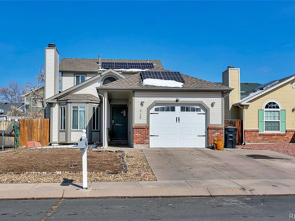 Do not miss out on this wonderfully UPDATED starter home! You won't find another remodeled 3 bedroom 2 bathroom home priced UNDER $250K for miles! Enter this home that boasts a cozy FIREPLACE that has been trimmed with stylish brick, NEW LAMINATE flooring, a kitchen with STAINLESS STEEL APPLIANCES, living room and Master bedroom VAULTED CEILINGS - and don't forget the ATTACHED GARAGE. SPACIOUS Master bedroom has it's own floor of this home with laundry conveniently located nearby. LOW MAINTENANCE backyard with plenty of room to entertain or relax and a grassy area sectioned off as a dog run. As a bonus, this home is fitted with SOLAR PANELS that will be transferred to the new owner and provides MASSIVE energy savings! 15 minutes to Ft. Carson and 5 minutes from Peterson Air Force Base. THIS HOME WONT LAST!