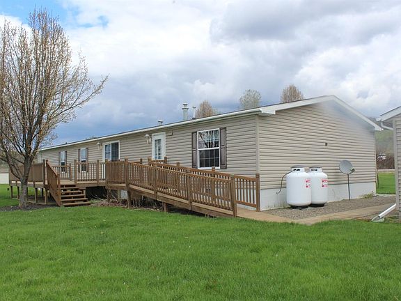 Home looks like NEW! Ready to move in to! This beautiful doublewide is on a block foundation with slab and tiedowns. Offering 3 bedrooms, 2 full baths, kitchen with center isle and cathedral ceilings. The Master suite has full bath with walk-in shower and two walk in closets. The home has propane heat. A nice laundry room with sink and has 200 Amp service. Enjoy this level, nicely landscaped yard with deck. Great views of the valley and distant mountains.