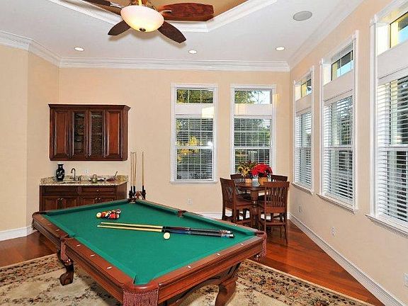 HIDDEN OAKS ESTATES Live in a luxurious gated estate home on 2 fenced acres with all the conveniences of a central Sarasota location. The entrance to this custom home begins with a gated 13,000sf paver brick driveway. This professionally designed and decorated 4746sf home includes the finest upgrades throughout. Features 4BR, 4BA, Office/Den, Bonus/Game Rm, 4 Car Garage, and a Detached 6 Car +RV/Boat Garage with Guest Suite. Quality gourmet kitchen includes stainless steel appliances, sub zero side by si de, 2 ovens, microwave, dishwasher, and a gas 6 burner range top. Wood cabinets and granite counter tops w/custom tile back splash, island counter, large closet pantry and a butlers pantry. The expansive Master Suite features his/hers bathrooms, walk-in closets and shares an over sized roman shower. Double crown ceiling molding, 6 and a half inch baseboard, double tray ceilings, travertine tile floors, hardwood floors & custom wood blinds are featured upgrades. This home has a 4 zone A/C system and a 45k w generator provides electric should there be a power failure. Outdoor entertaining includes a Pergola with fire pit, an 18x36 salt pool, heated spa, screened lanai with outdoor kitchen, paver brick deck & tongue/groove ceiling. The Detached Garage with Guest Suite is apx 3,800sf. The roof is high quality 24 gage galvalume. Windows/doors are PGT win guard designed for 130 mph winds. Ideally located with less than an 8 minute drive to downtown and nearby medical facilities, schools, shopping, dining.