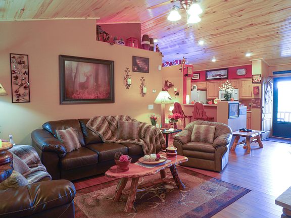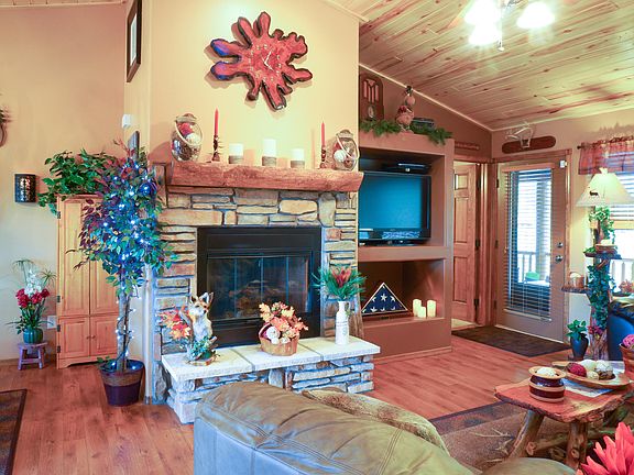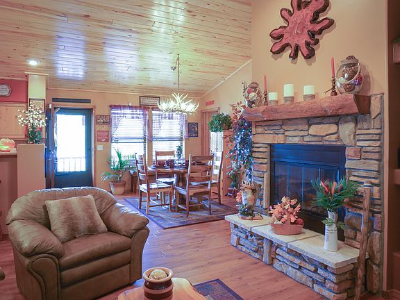 Make your next home this nice cabin in the tall pines. This two bedroom two bathroom cabin has aspen clad ceiling, rock gas fireplace, built in entertainment center in living room. Lets not forget the spacious master bedroom with ensuite and water closet, plus large walk in closet. The second bedroom is also large with nice size closet. Good size rear patio with power outlets so you can watch your favorite sports team in the beautiful white mountain weather. There is a community garden a stone's throw away and a private park for the kiddos to play. For the outdoors enthusiast there is also hiking paths not too far down the road. There is a storage unit with roll up metal door in the front for your 4x4's or bicycles, also there is access under the home for additional storage LOTS OF VALUE!!